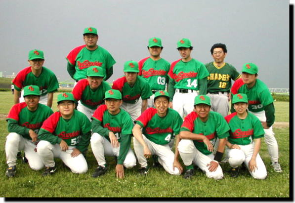 《チーム紹介》 2000年4月に結成したRedShoulderです。 葛飾柴又の河川敷グラウンドをホームグラウンドとし、4〜11月の第1,3土曜日に活動しています。 平均年齢は32歳くらいで、メンバーの半数以上が今回の結成により、野球を始めたという、未熟なチームです。リーグ等には参加せず、フリーで活動してます。 対戦していただけるチームがありましたら、連絡お待ちしてます。あまり、遠くなければ遠征も可能です。 (前述の通り、現時点ではかなり弱いチームなので、 強豪チームさんでは、練習にならないと思いますが…。) 代表:瀧本 lizardon@d6.dion.ne.jp |