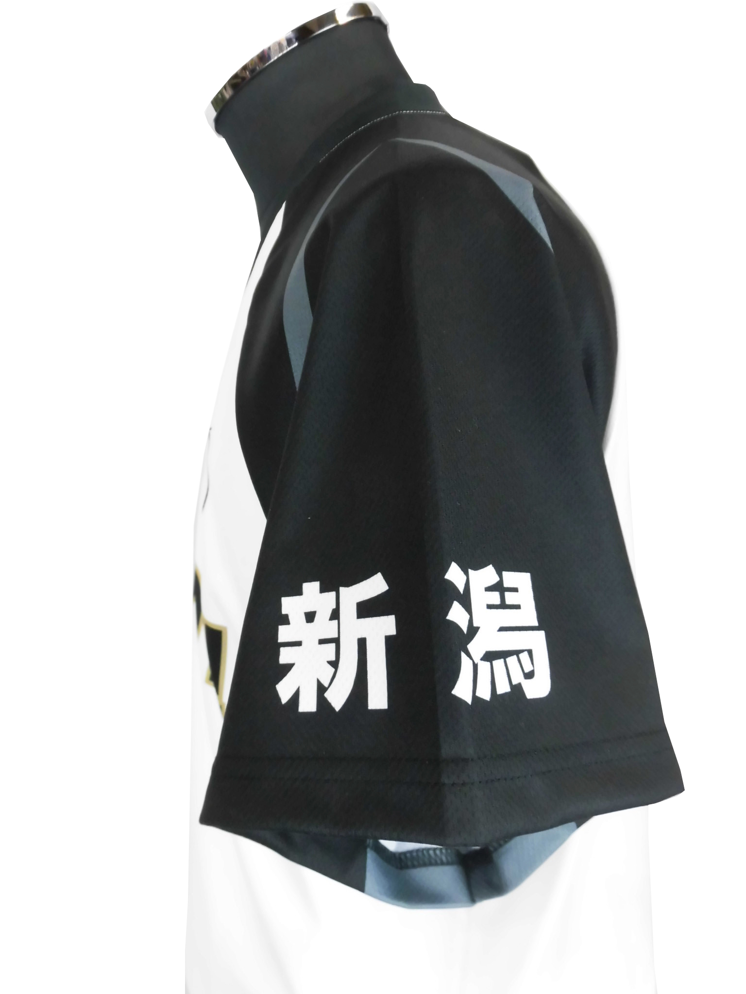 胸のチーム名の縁にシャンパンゴールドをあしらい、モノトーンの中にアクセントあるデザインに。