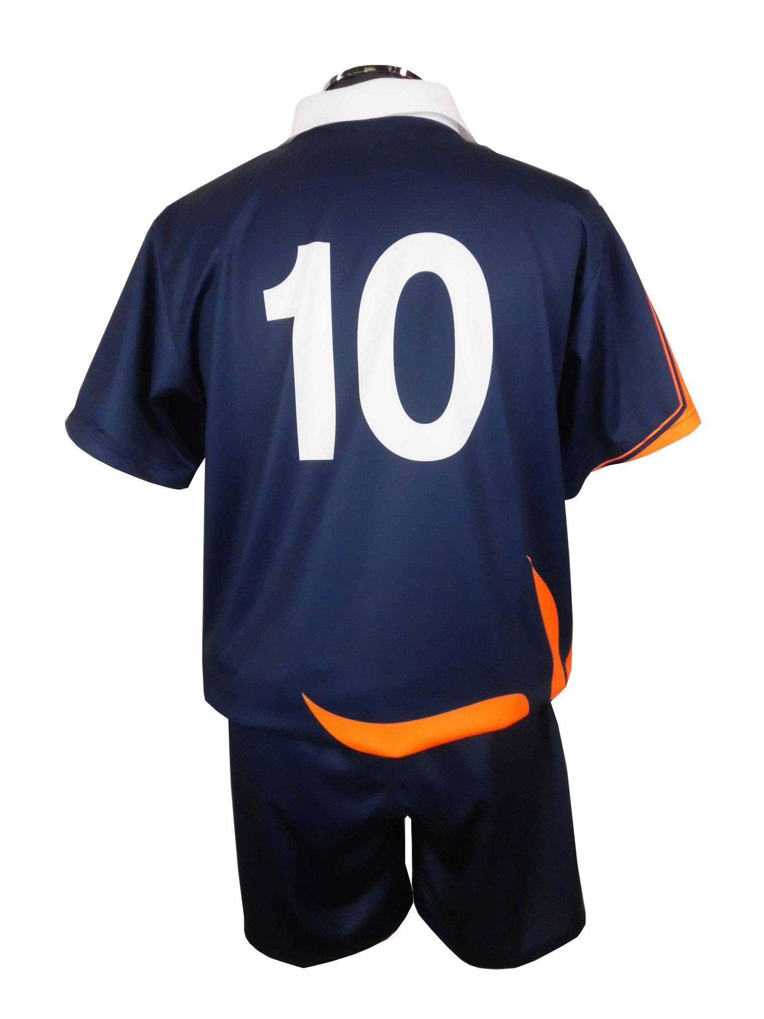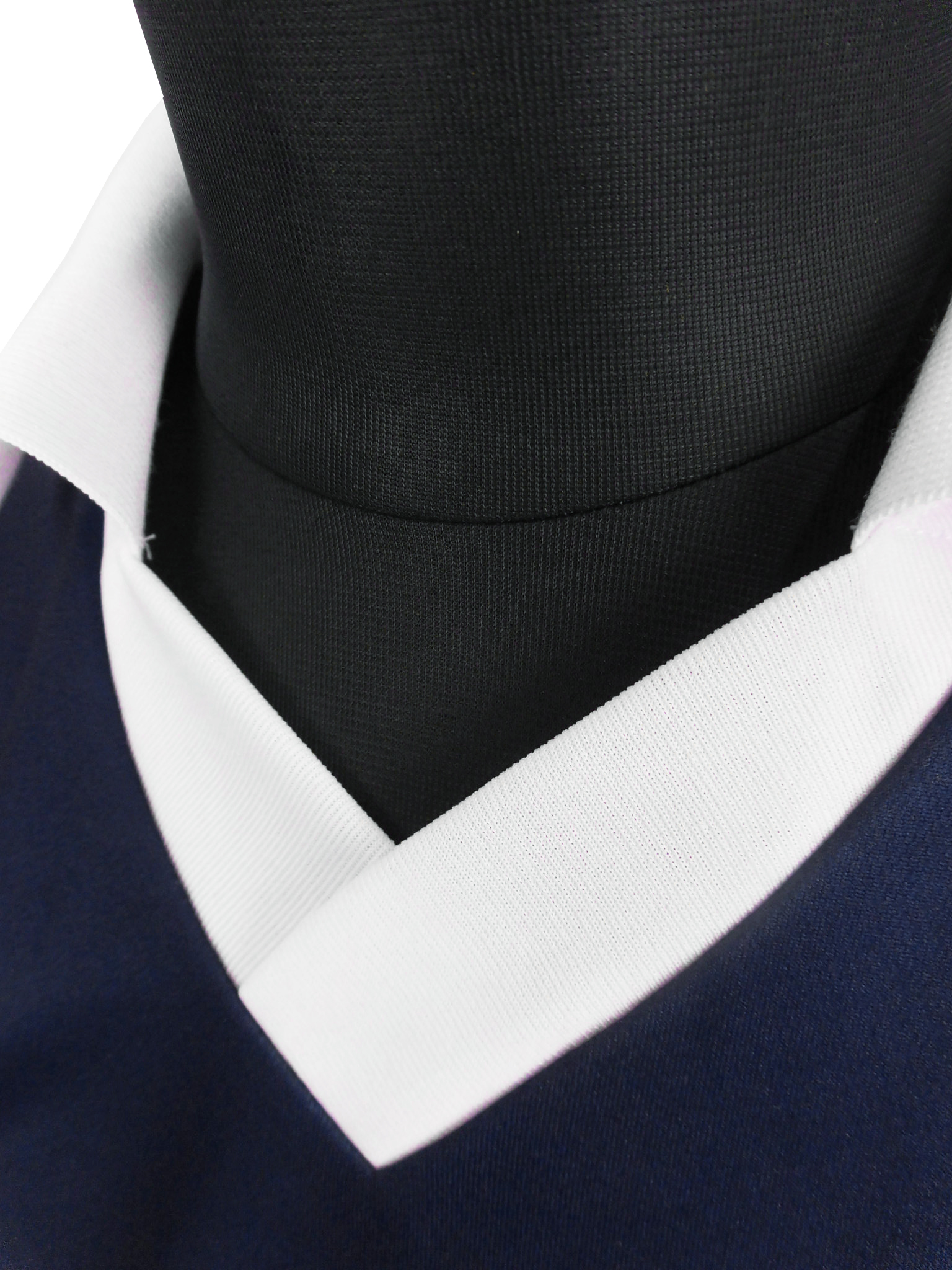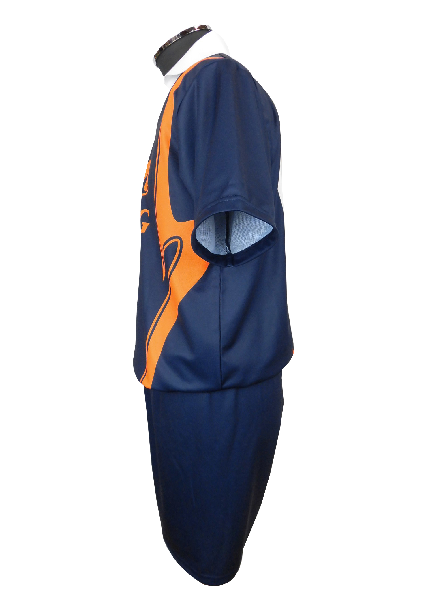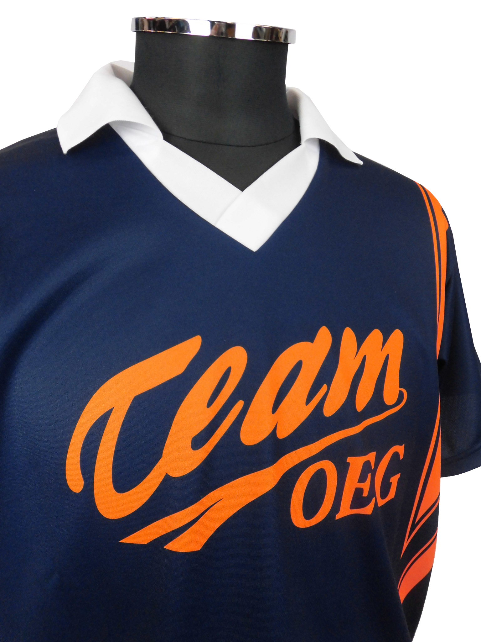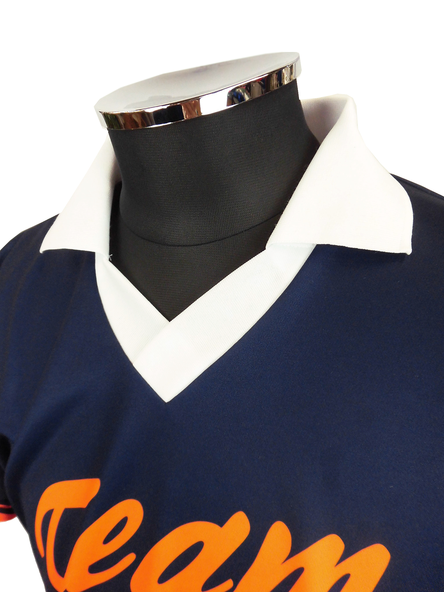 襟付きユニフォームをご希望で、カスタムフリーのサッカー型紙をベースに、ネックを襟付きネックにして制作させていただきました。