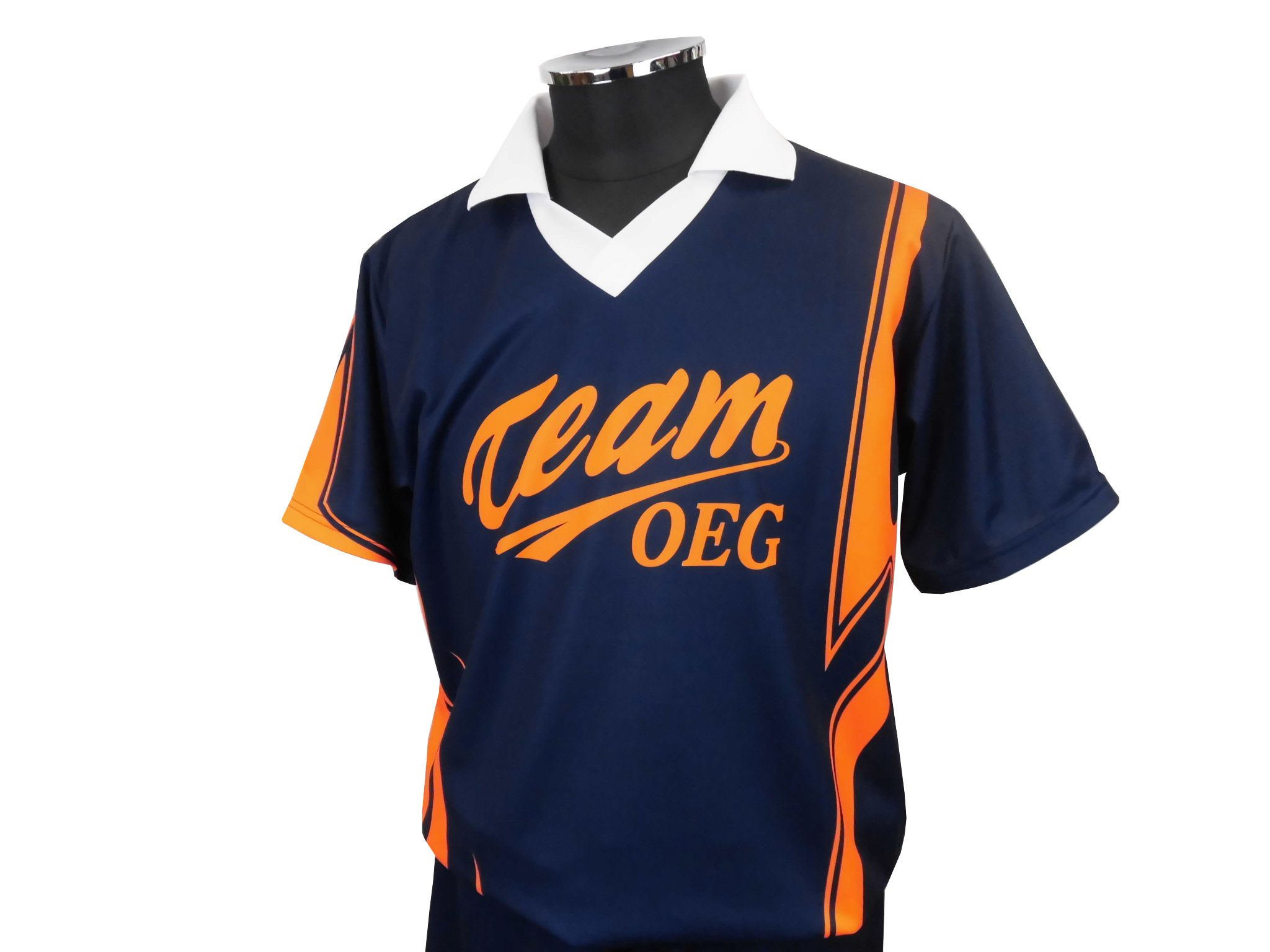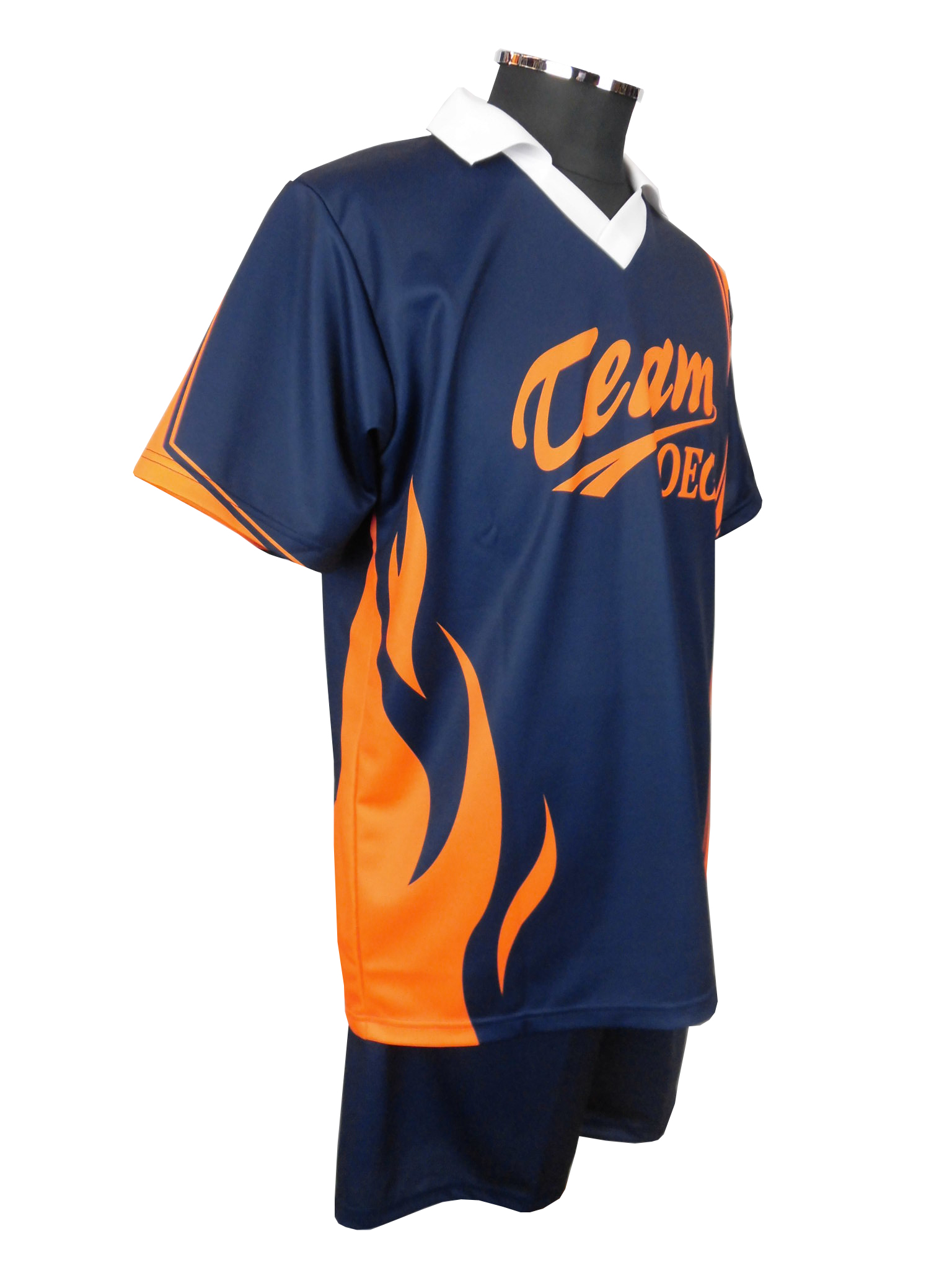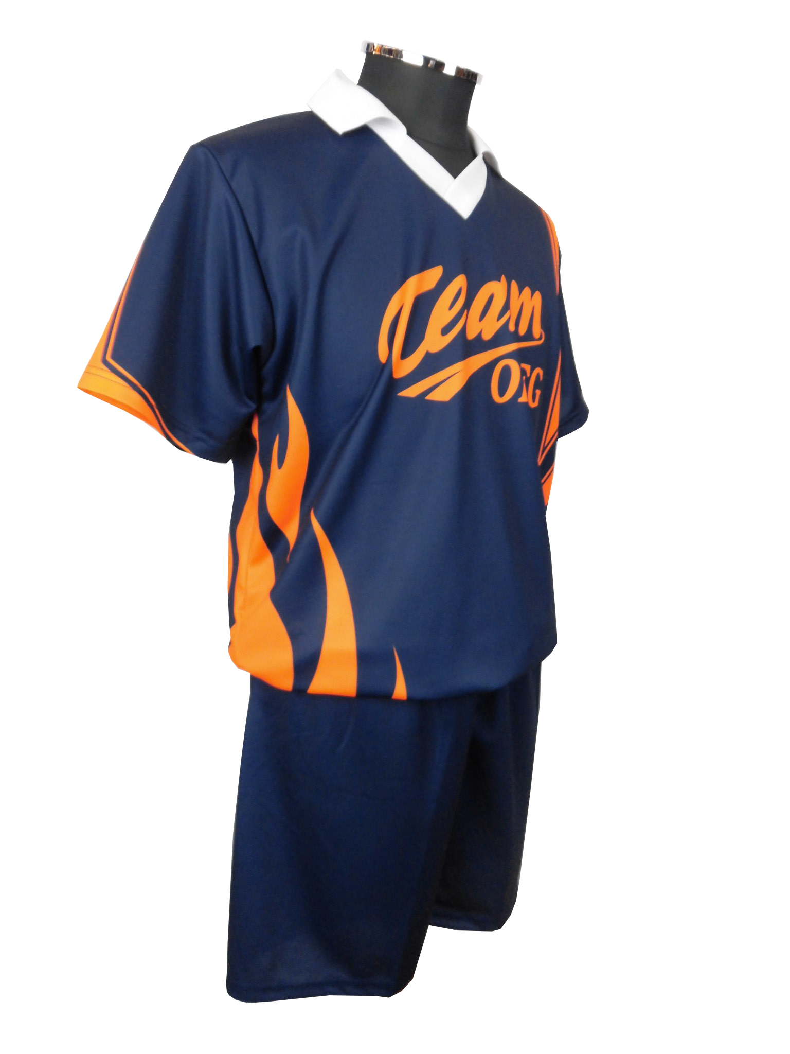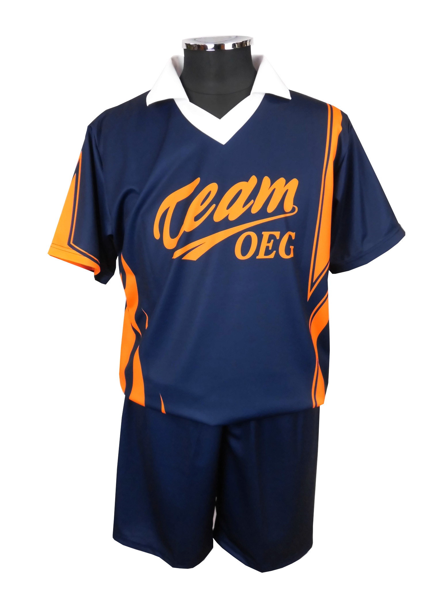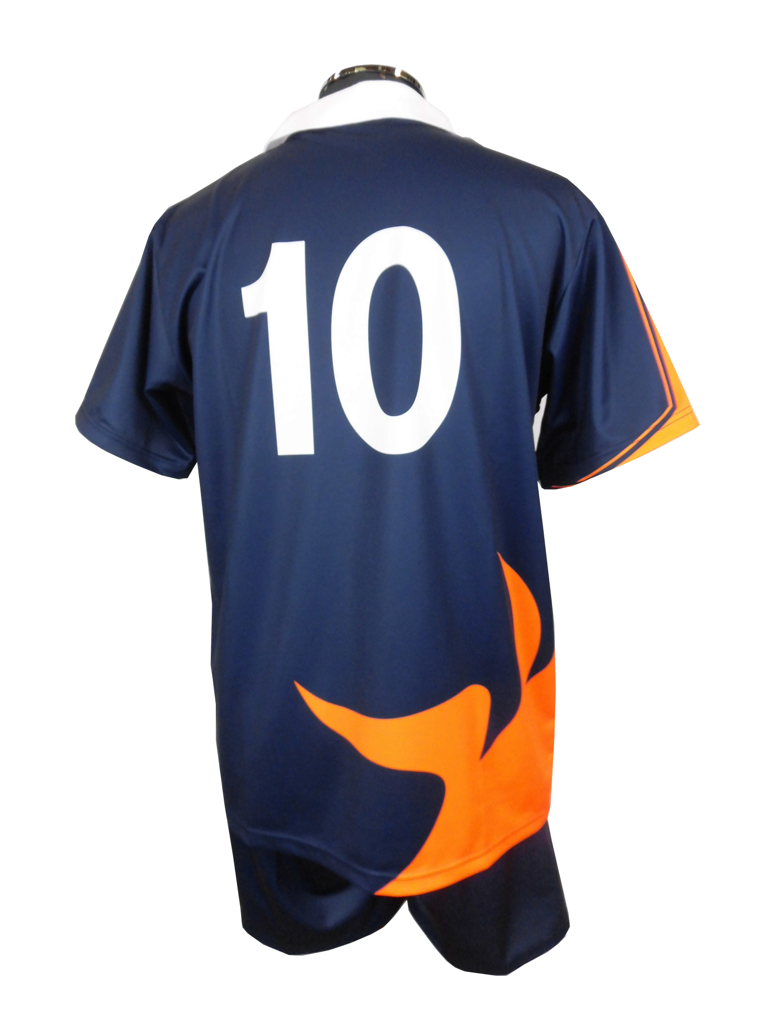 襟付きユニフォームをご希望で、カスタムフリーのサッカー型紙をベースに、ネックを襟付きネックにして制作させていただきました。