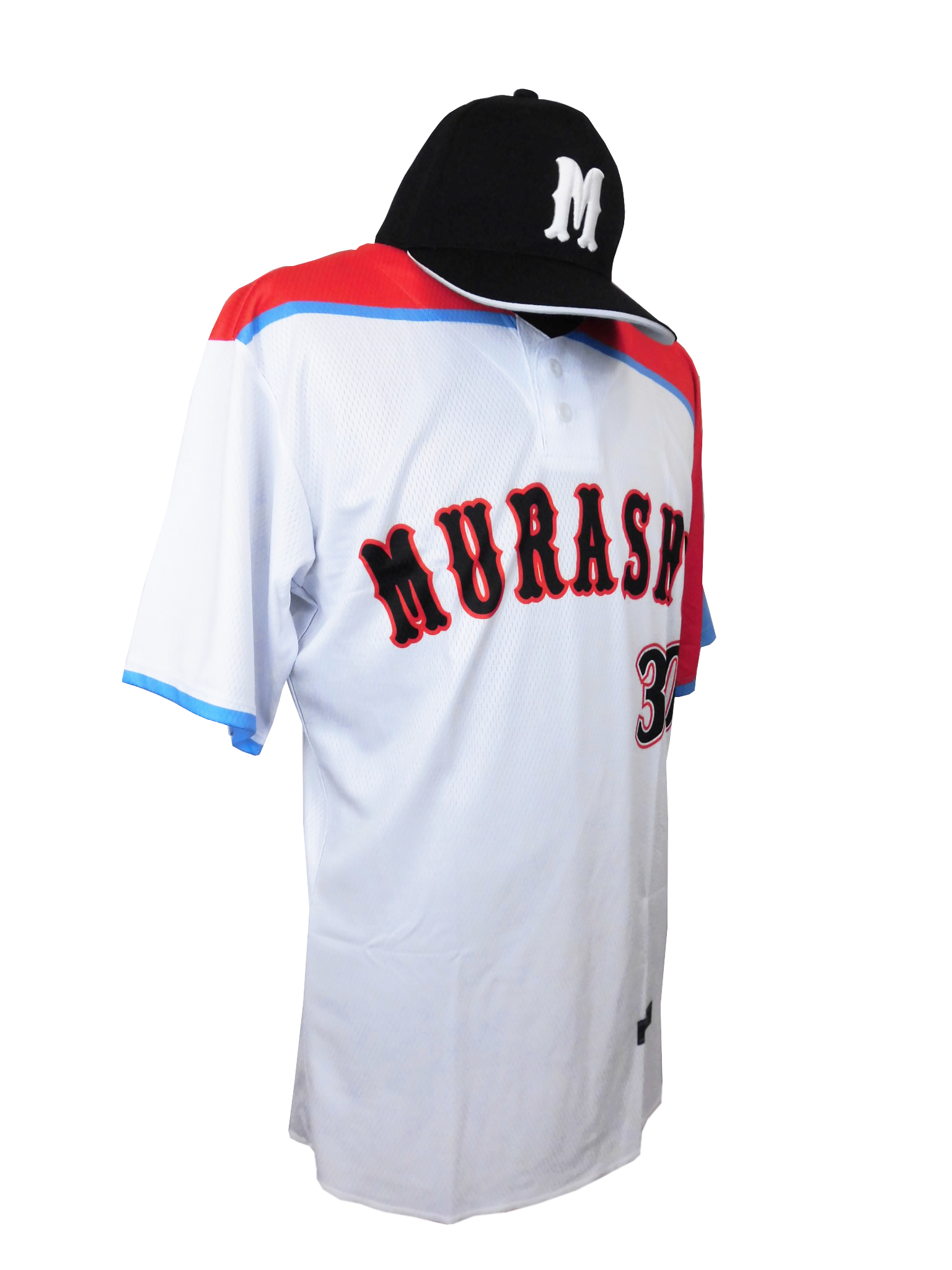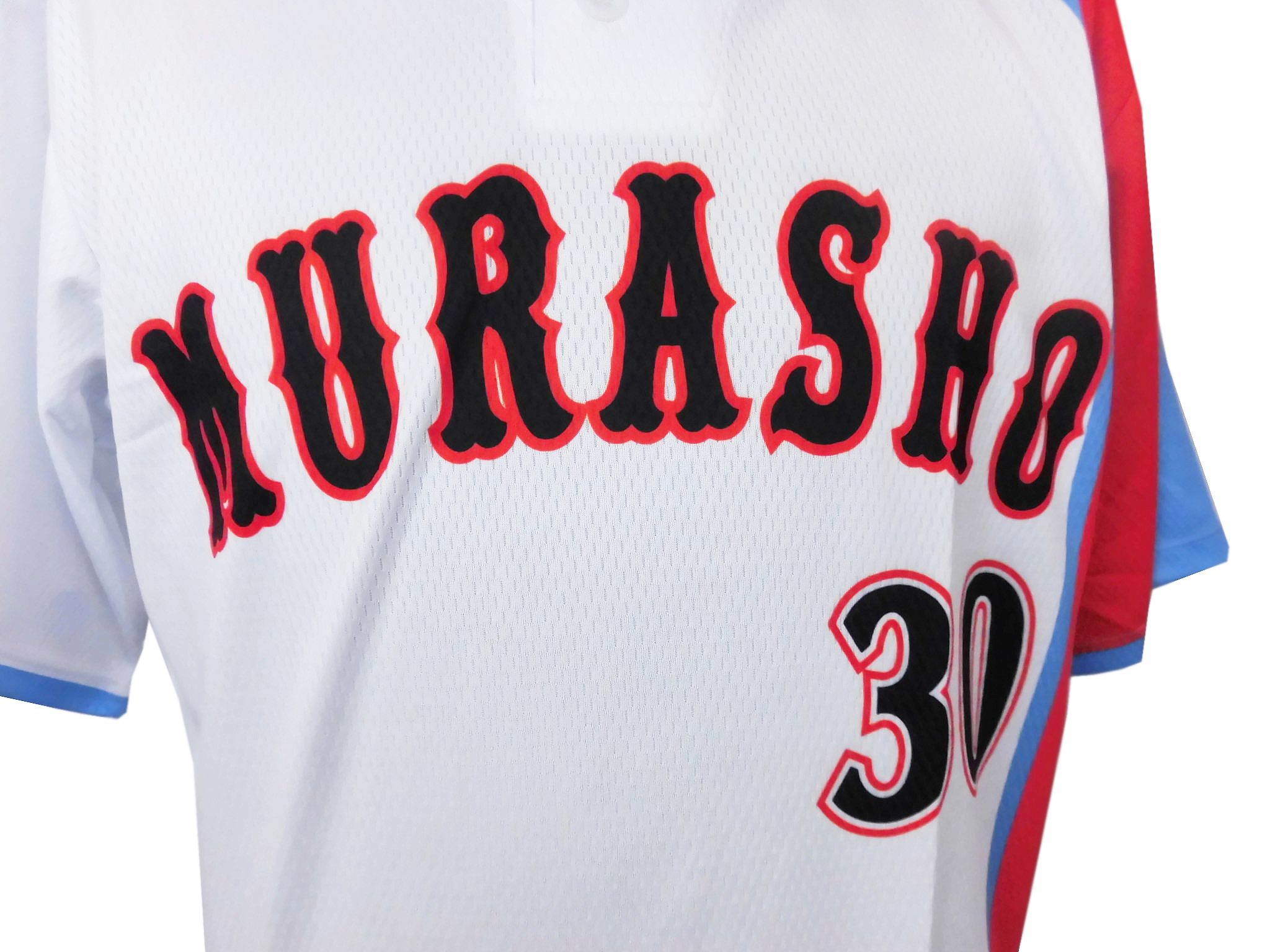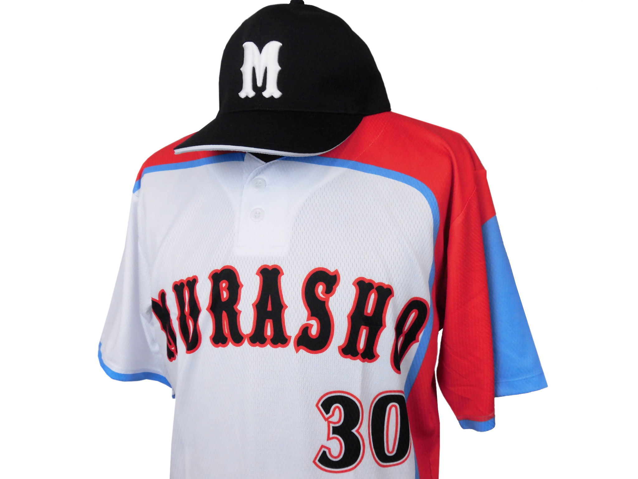 会社の野球チーム「村商㈱様」 シャツ・パンツ・帽子を制作ご希望で、実店舗にご来店いただき打合せをさせていただきました。 作りたいイメージをお伺いし、TEAMSで制作できる方法やデザイン等、打合せをしながらイメージを固めていきました。 シャツは、ホワイトをベースにサックスとレッドを組合せた昇華ユニフォーム。 胸マークはブラック×レッド縁。 胸&背番号はブラック×ホワイト×レッド。 帽子はブラックに決定!「M」1文字のボリューム直刺繍をホワイトでお入れしました。 村商様のオリジナル野球ユニフォームが完成いたしました。