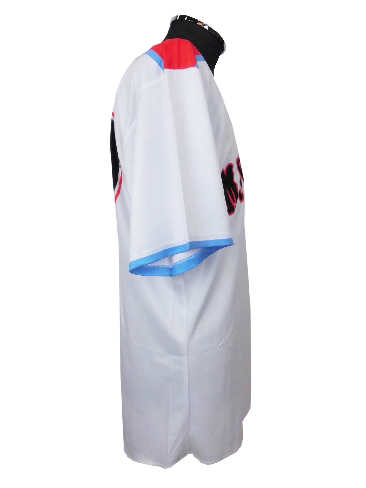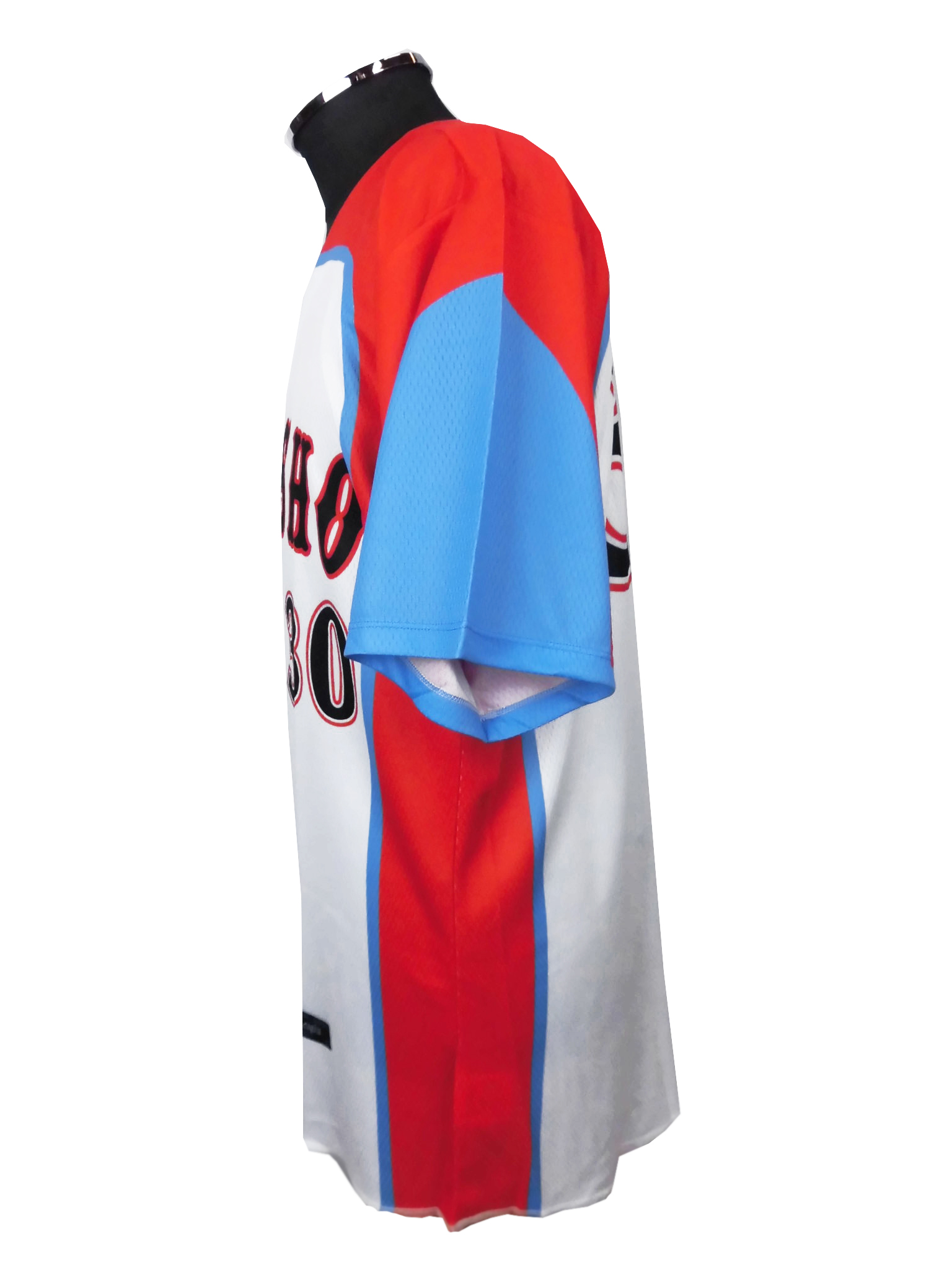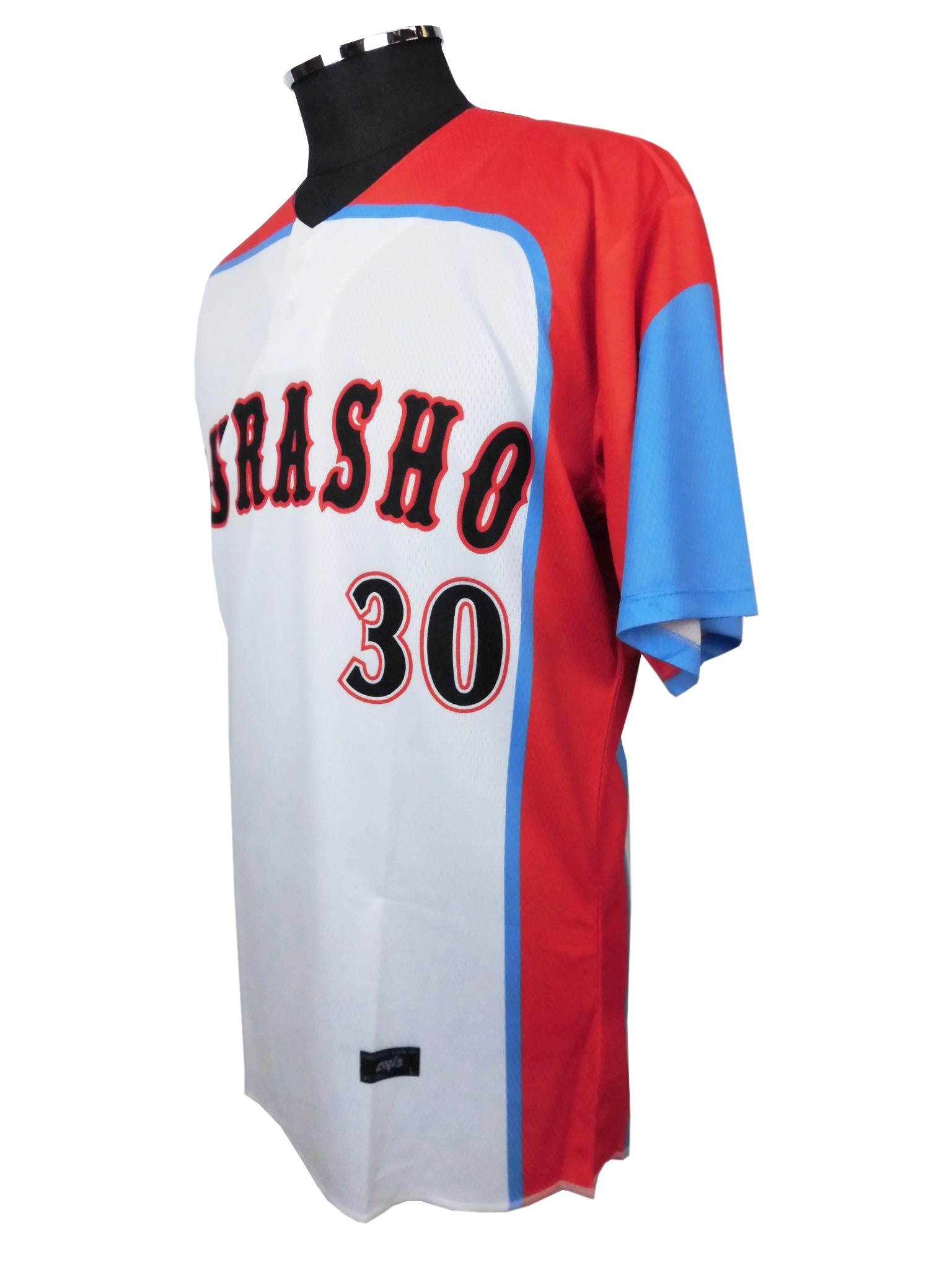 会社の野球チーム「村商㈱様」 シャツ・パンツ・帽子を制作ご希望で、実店舗にご来店いただき打合せをさせていただきました。 作りたいイメージをお伺いし、TEAMSで制作できる方法やデザイン等、打合せをしながらイメージを固めていきました。 シャツは、ホワイトをベースにサックスとレッドを組合せた昇華ユニフォーム。 胸マークはブラック×レッド縁。 胸&背番号はブラック×ホワイト×レッド。 帽子はブラックに決定!「M」1文字のボリューム直刺繍をホワイトでお入れしました。 村商様のオリジナル野球ユニフォームが完成いたしました。