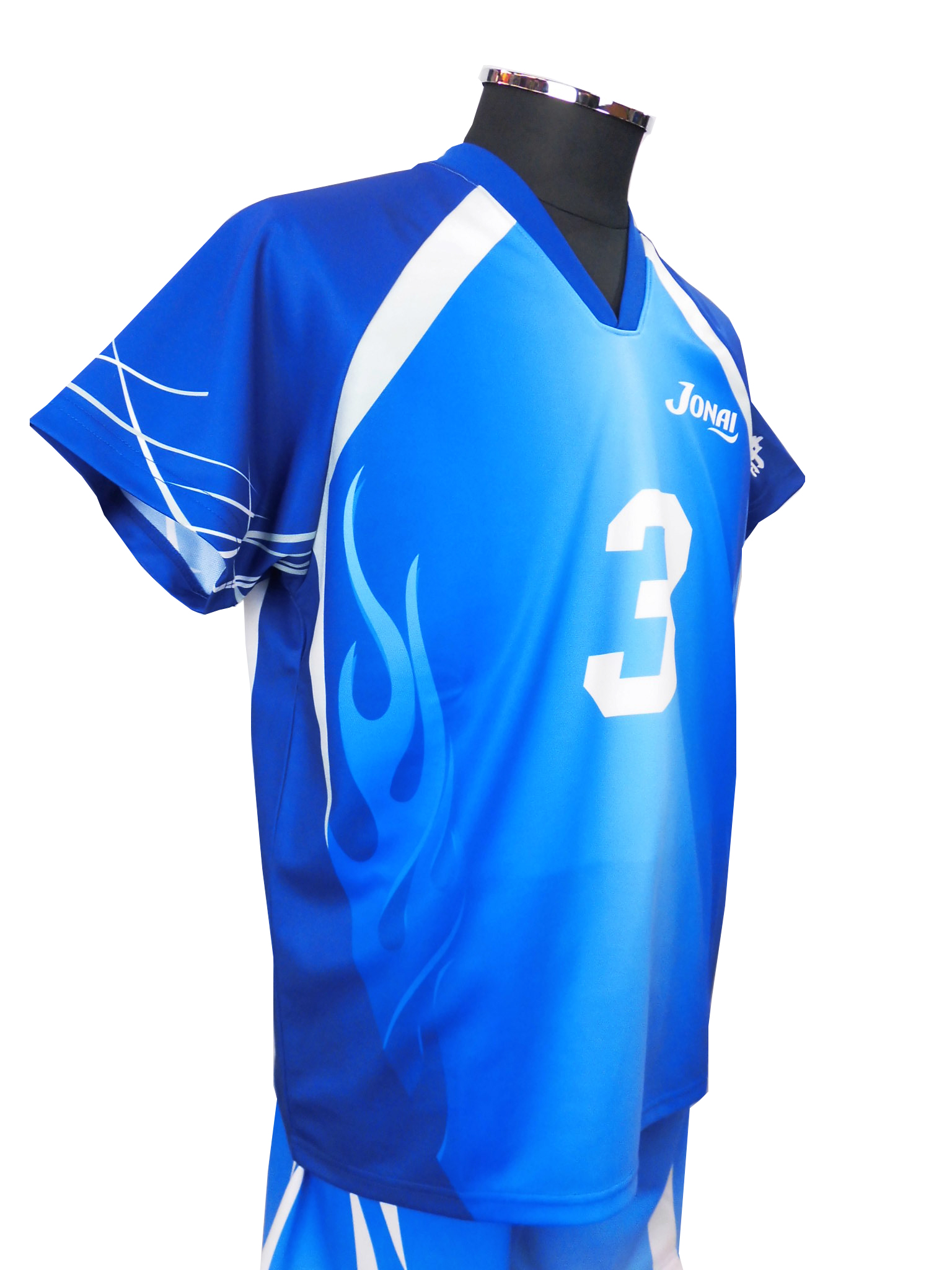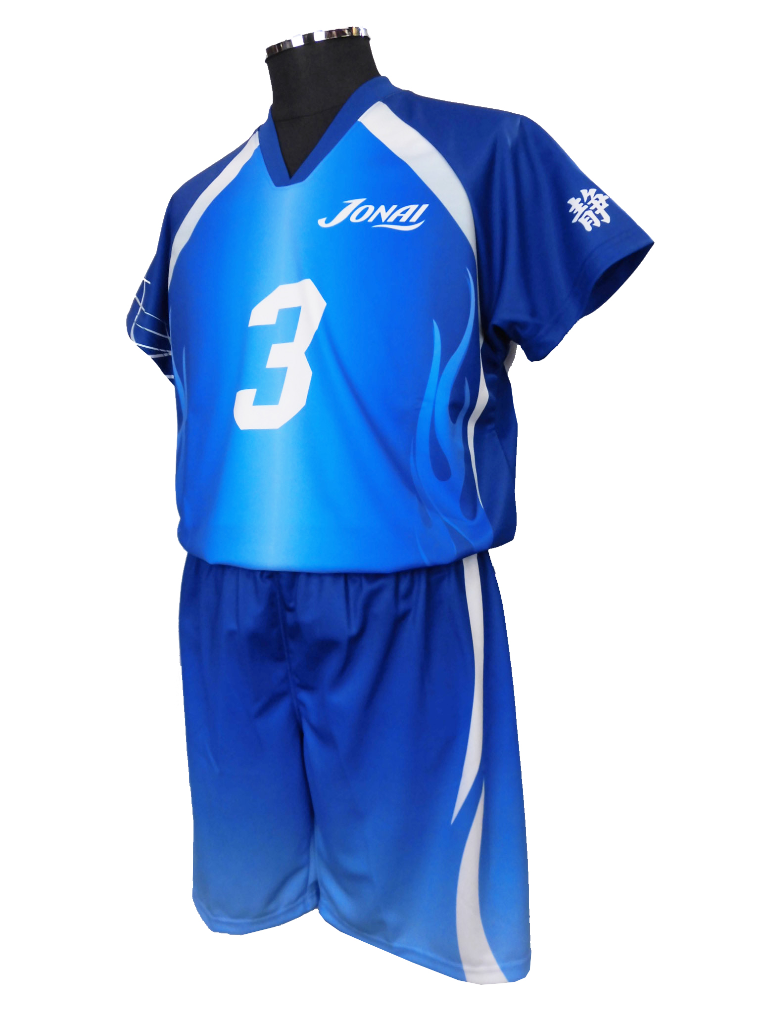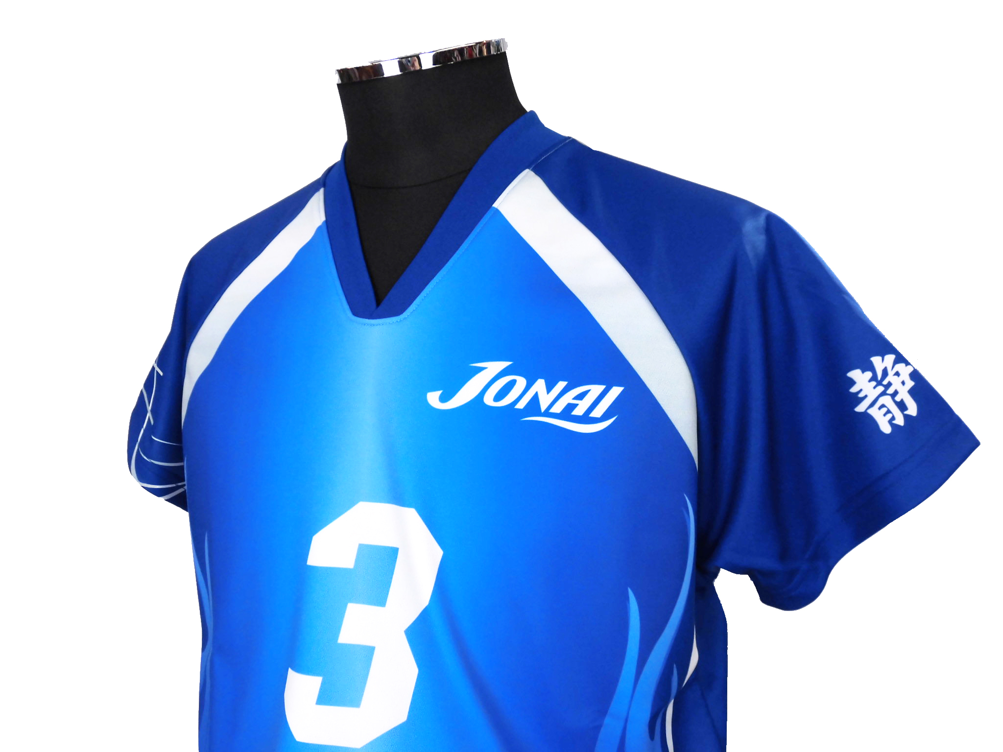 シャツには[ブルー][ライトブルー][サックス]の3カラーを用いたグラデーション。