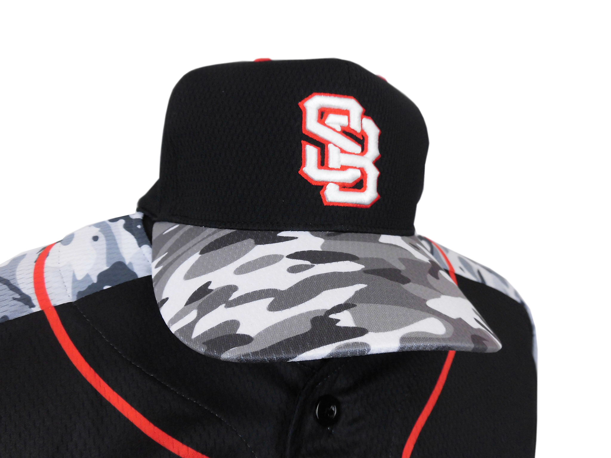 帽子もユニフォームに合わせツバ部に迷彩デザインを施した、2タイプのオーダー帽子を制作させていただきました。