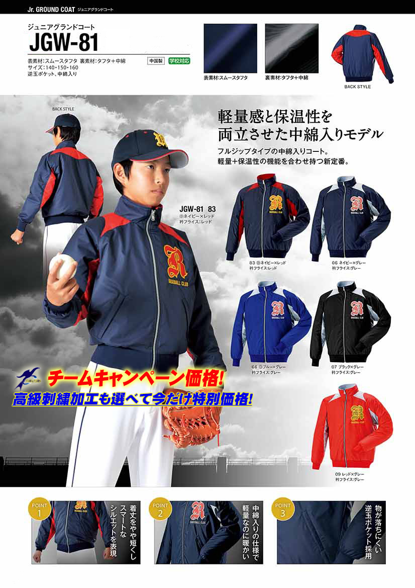 その他、オリジナルロゴマークやイラストマーク等、オリジナルマークをお入れすることや、「こんなマーク入れたい」「背中にチーム名を入れたい」等のご相談も可能です!さらにこだわったオリジナルのグラウンドコートが創れます。(オリジナルマークはお見積りとなります) お気軽にお問合せ・ご相談くださいませ。| (cm) | ||||||